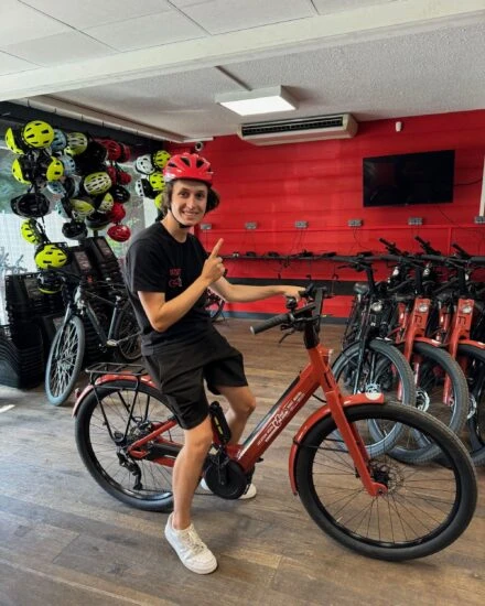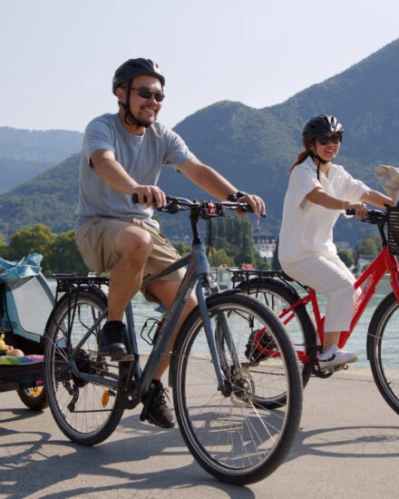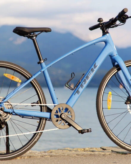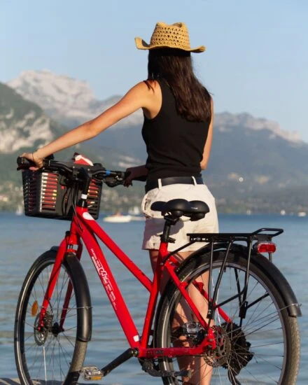 The Confort Alu Facile hybrid bike is ideal for leisurely rides along the lake, around the lake, and in the city.